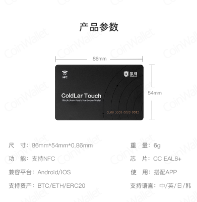 ColdLar Touch 库神卡片钱包 离线物理存储 支持NFC